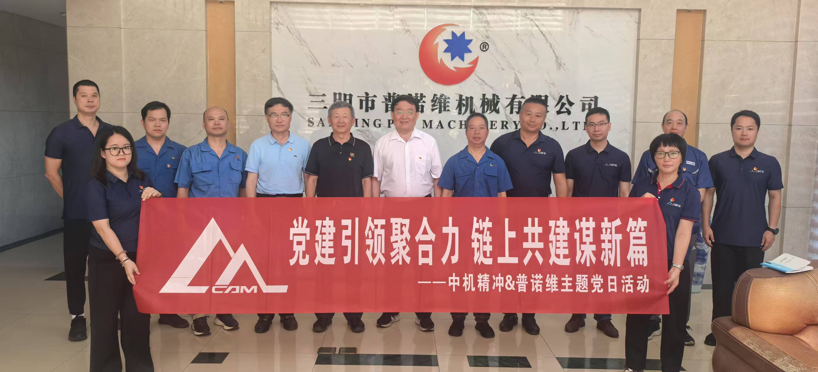 7月5日,为深入贯彻落实上级党委关于加强产业链党建工作的部署要求,切实以高质量党建引领产业链高质量发展,中机精冲科技(福建)有限公司与三明市普诺维机械有限公司就精冲产业链联合开展“党建引领聚合力 链上共建谋新篇”为主题的党建共建活动,以"党建+产业链"模式探索高端精冲领域协同发展新路径。北京机电研究所副总经理、中机精冲董事长孙振田带队,双方党员及骨干共17人参加,标志着双方在探索精冲产业链协同创新、共谋发展新篇章上迈出了坚实的第一步。